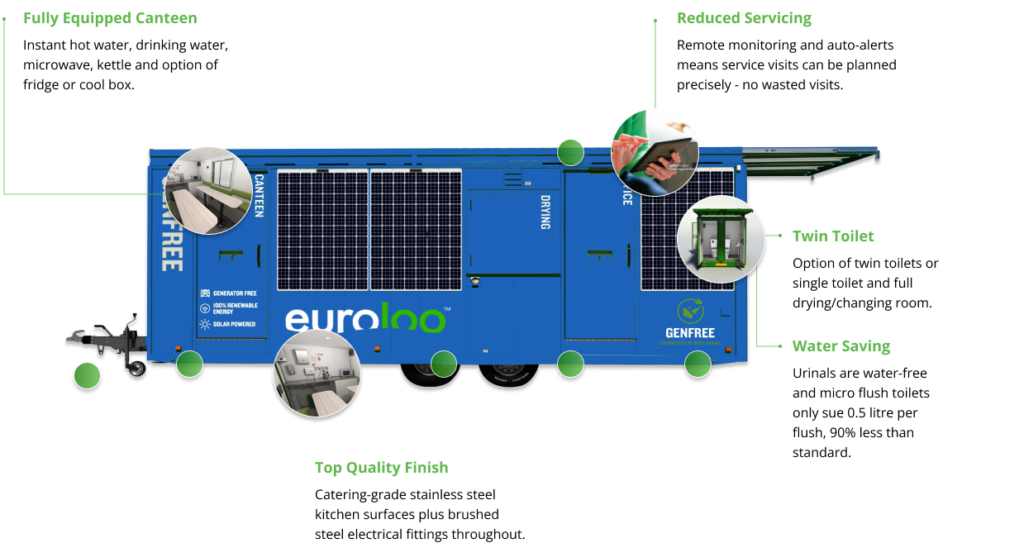 At euroloo, sustainability is at the core of our toilet hire and welfare service. We are dedicated to responsibly managing our business activities to minimise resource use and environmental impact. Our commitment to sustainability guides us in enhancing our products and services, diminishing the environmental footprint of our operations and ensuring a respectful and secure workplace for our team. We are actively developing our sustainability management system which will be published in our pending 2024 sustainability report.